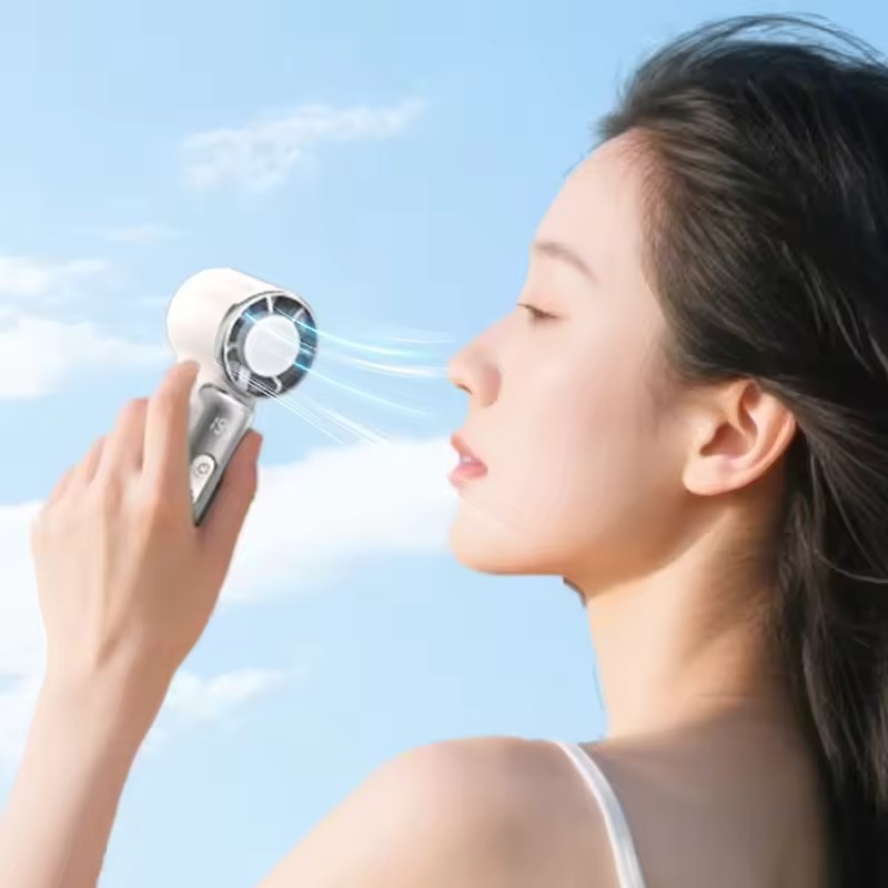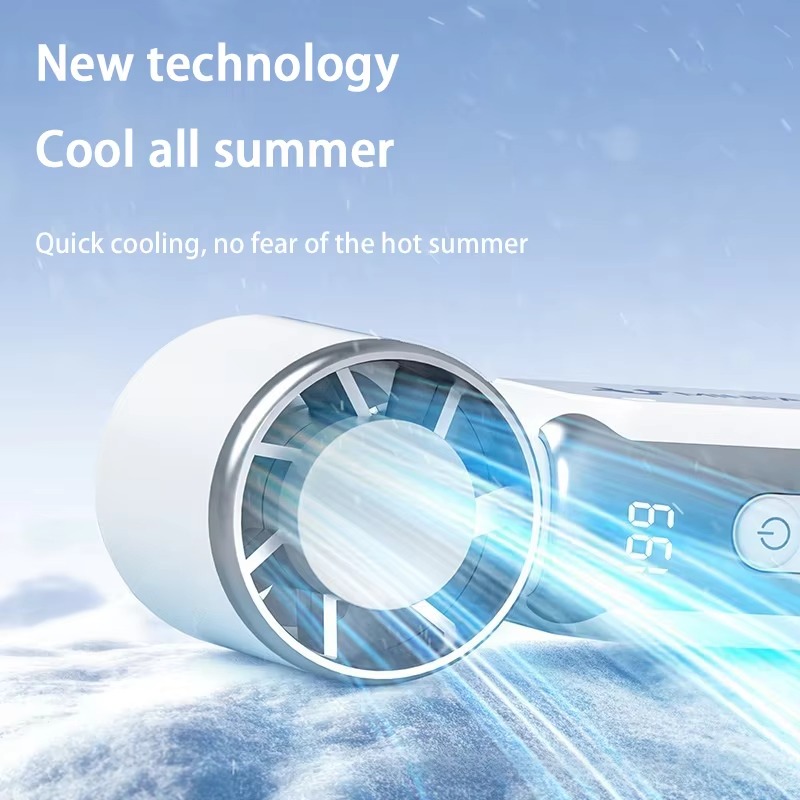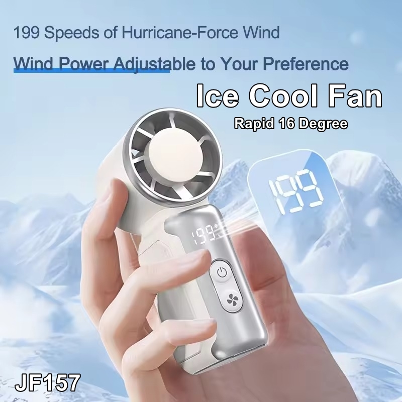 Handheld turbo fan with a semiconductor refrigerator Ice cooling system Digital Display, perfect for camping, travel, and summer outdoor use.